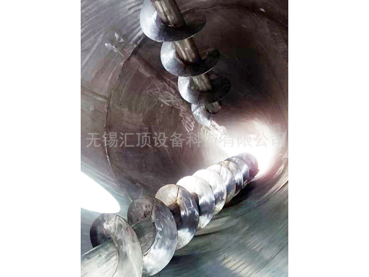 ● 螺旋部分:筒体内两只非对称排列的螺旋作自、公转行星运动时,在较大范围翻动物料,使物料快速达到均匀混合。